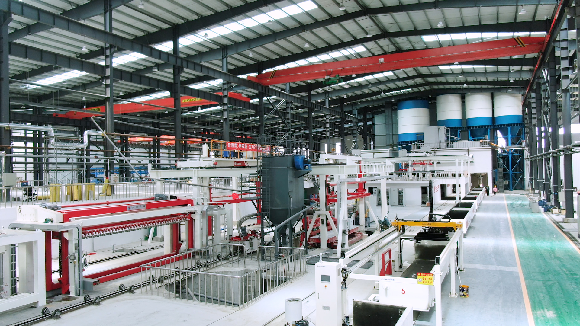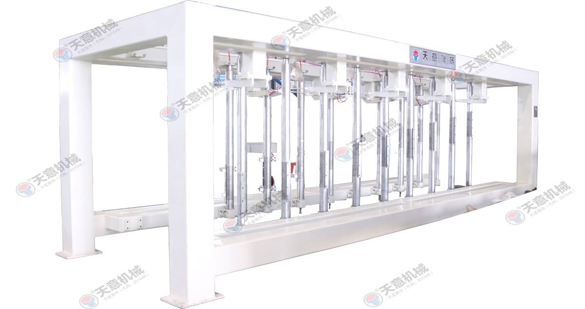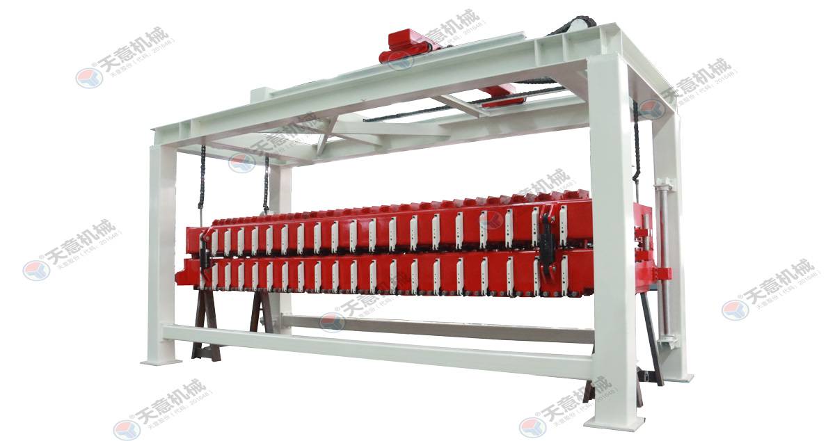 翻轉(zhuǎn)吊機:抓取模箱翻轉(zhuǎn)90°,側(cè)立在切割小車上進行切割;切割工段空翻脫模機將??蚍D(zhuǎn)90°,放在切割小車支座上進行脫模,脫模后的模框與清理后的側(cè)模板進行合模,合膜后的空模框被吊運至模具回程軌道上進行涂油處...